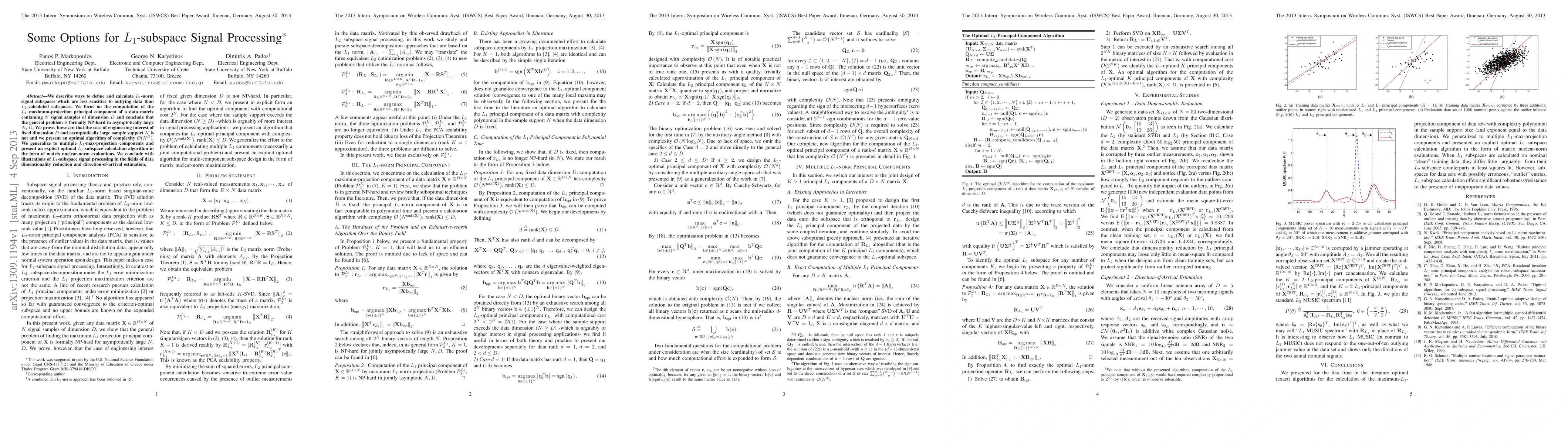 This paper explores methods for defining and computing $L_1$-norm signal subspaces that are more robust to outliers compared to $L_2$-norm subspaces. It presents an optimal algorithm for calculating the $L_1$ maximum-projection principal component and generalizes this to multiple components, concluding with applications in dimensionality reduction and direction-of-arrival estimation.