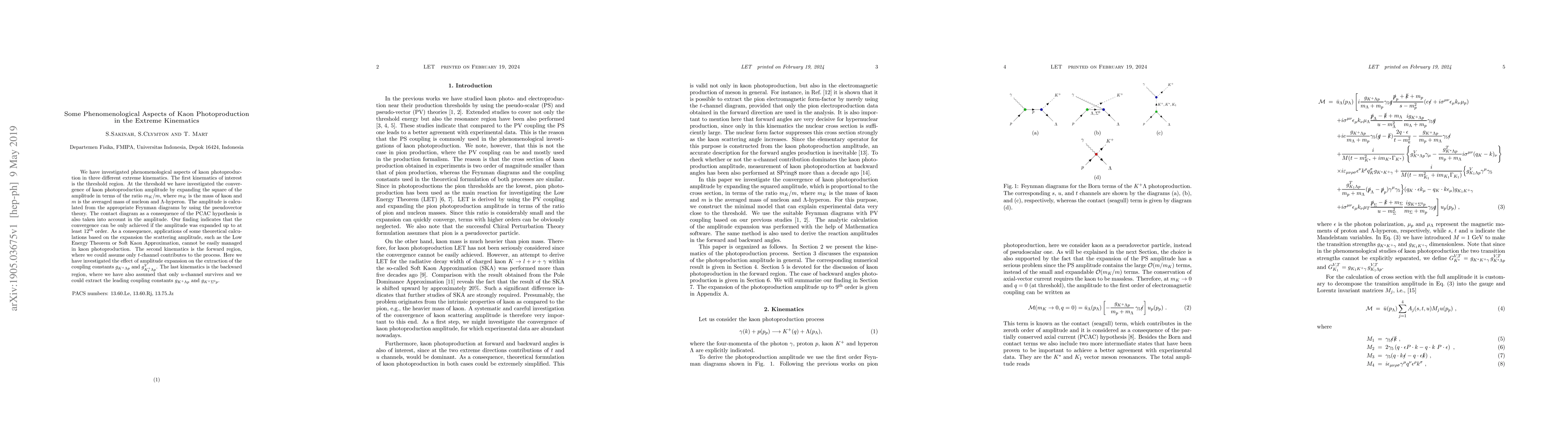 We have investigated phenomenological aspects of kaon photoproduction in three different extreme kinematics. The first kinematics of interest is the threshold region. At the threshold we have investigated the convergence of kaon photoproduction amplitude by expanding the square of the amplitude in terms of the ratio $m_K/m$, where $m_K$ is the mass of kaon and $m$ is the averaged mass of nucleon and $\Lambda$-hyperon. The amplitude is calculated from the appropriate Feynman diagrams by using the pseudovector theory. The contact diagram as a consequence of the PCAC hypothesis is also taken into account in the amplitude. Our finding indicates that the convergence can be only achieved if the amplitude was expanded up to at least $12^{\rm th}$ order. As a consequence, applications of some theoretical calculations based on the expansion the scattering amplitude, such as the Low Energy Theorem or Soft Kaon Approximation, cannot be easily managed in kaon photoproduction. The second kinematics is the forward region, where we could assume only $t$-channel contributes to the process. Here we have investigated the effect of amplitude expansion on the extraction of the coupling constants $g_{K^+\Lambda p}$ and $g^V_{K_1^+\Lambda p}$. The last kinematics is the backward region, where we have also assumed that only $u$-channel survives and we could extract the leading coupling constants $g_{K^+\Lambda p} $ and $g_{K^+\Sigma^0 p}$.