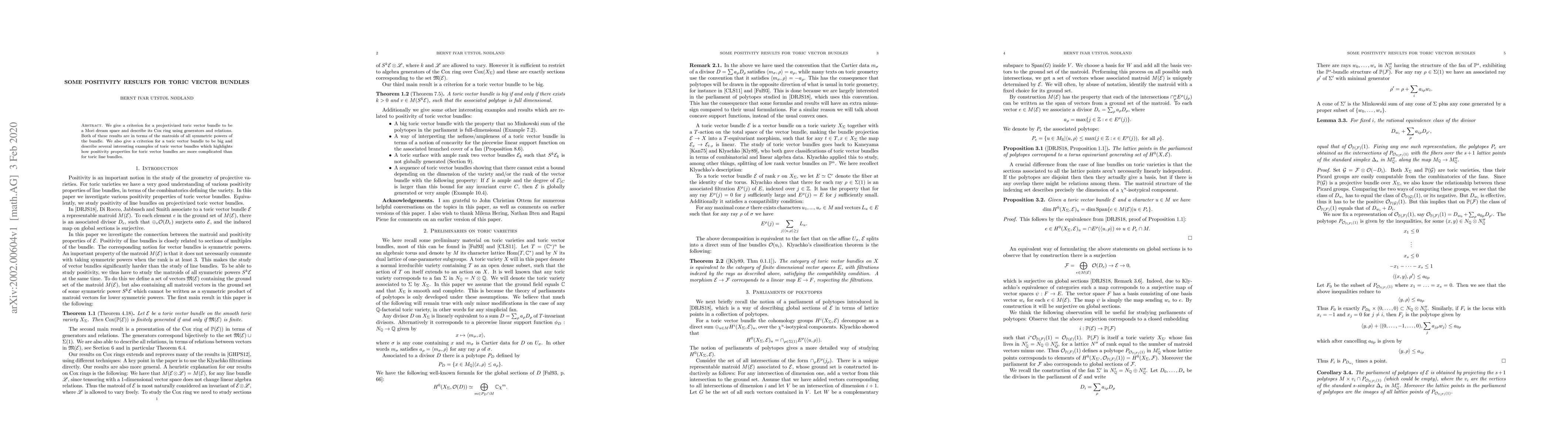 This paper establishes criteria for toric vector bundles to be Mori dream spaces and big, describes their Cox rings, and demonstrates that the positivity properties of these bundles are more complex than those of toric line bundles, using the matroids of symmetric powers of the bundles.