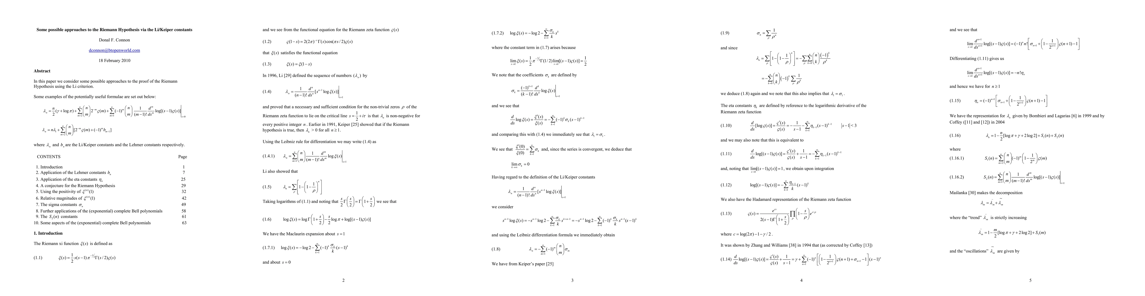 Summary: This paper explores potential approaches to proving the Riemann Hypothesis through the Li criterion, focusing on the Li/Keiper constants as a possible method. The study aims to provide new insights into the longstanding conjecture.
