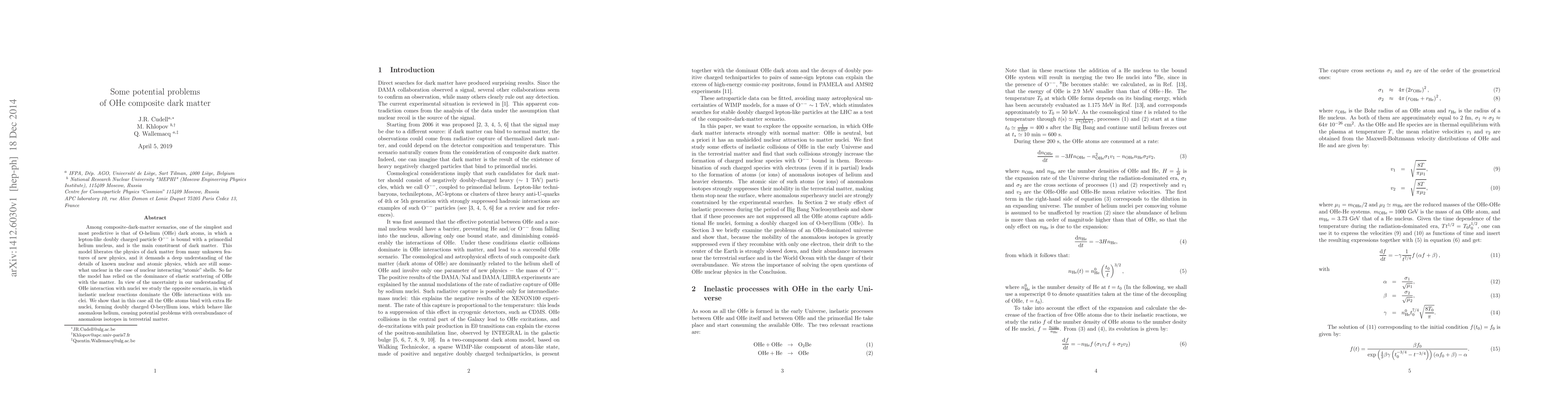 This paper explores the potential issues arising from O-helium (OHe) composite dark matter when inelastic nuclear reactions dominate interactions, leading to the formation of O-beryllium ions and causing an overabundance of anomalous isotopes in terrestrial matter. The study highlights uncertainties in nuclear interaction details and the implications for the OHe dark matter model.