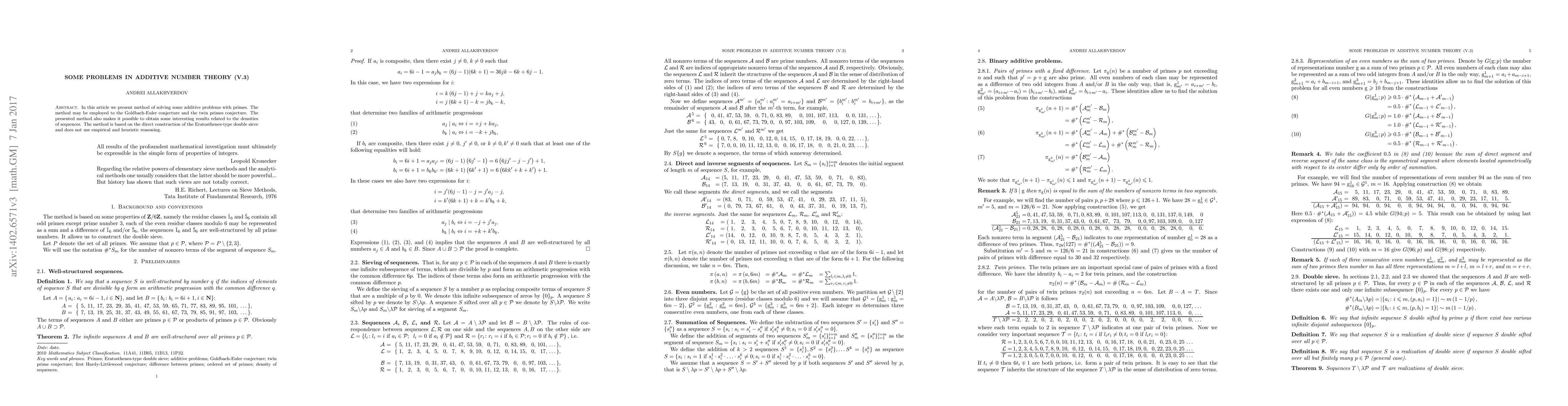 This paper introduces a novel method for solving additive number theory problems using a direct Eratosthenes-type double sieve, applicable to the Goldbach-Euler and twin primes conjectures, and yielding insights into sequence densities without relying on empirical or heuristic approaches.