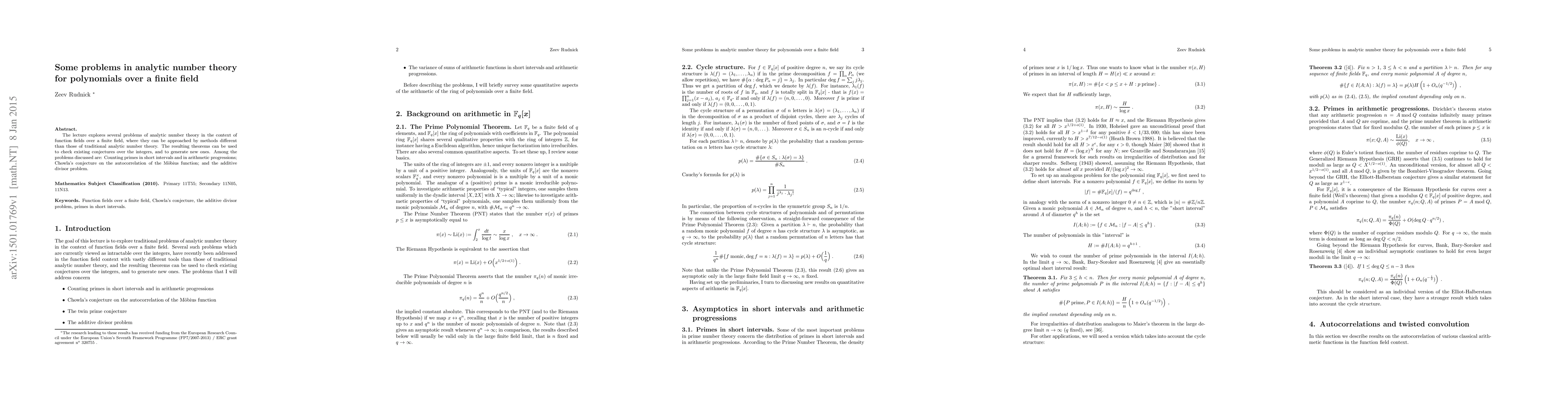The lecture, given at the ICM 2014 in Seoul, explores several problems of analytic number theory in the context of function fields over a finite field, where they can be approached by methods different than those of traditional analytic number theory. The resulting theorems can be used to check existing conjectures over the integers, and to generate new ones. Among the problems discussed are: Counting primes in short intervals and in arithmetic progressions; Chowla's conjecture on the autocorrelation of the Mobius function; and the additive divisor problem.