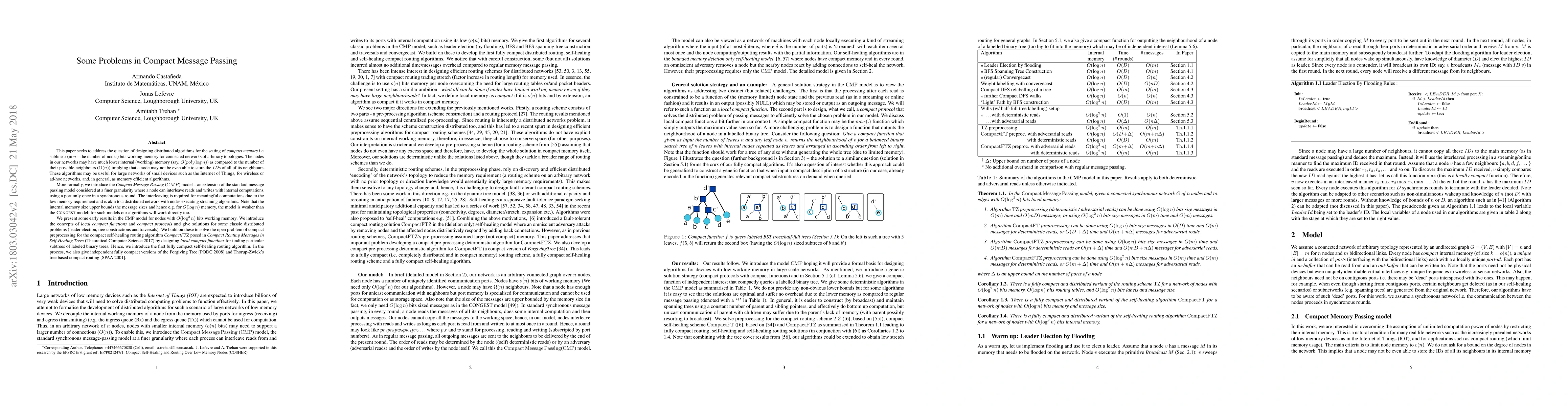Researchers developed a new model for compact message passing in distributed networks with limited memory, solving classic problems like leader election and tree constructions while improving routing algorithms.
