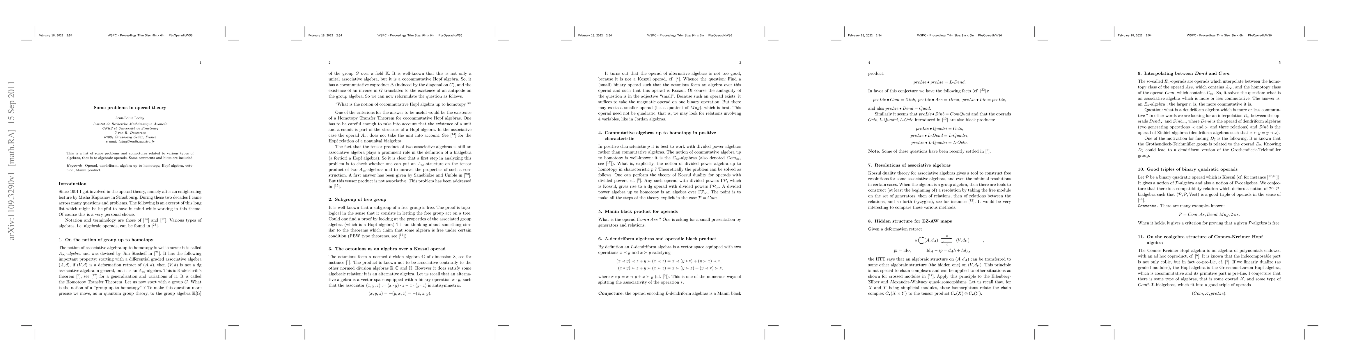 This is a list of some problems and conjectures related to various types of algebras, that is to algebraic operads. Some comments and hints are included.