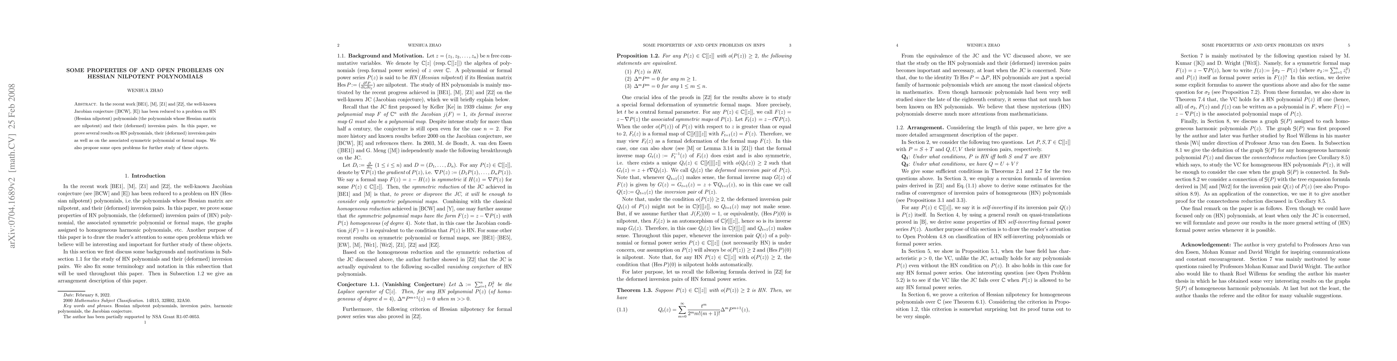This paper proves new results on Hessian nilpotent (HN) polynomials and their inversion pairs, linking them to the Jacobian conjecture. It also outlines several open problems for further research on these mathematical objects.
