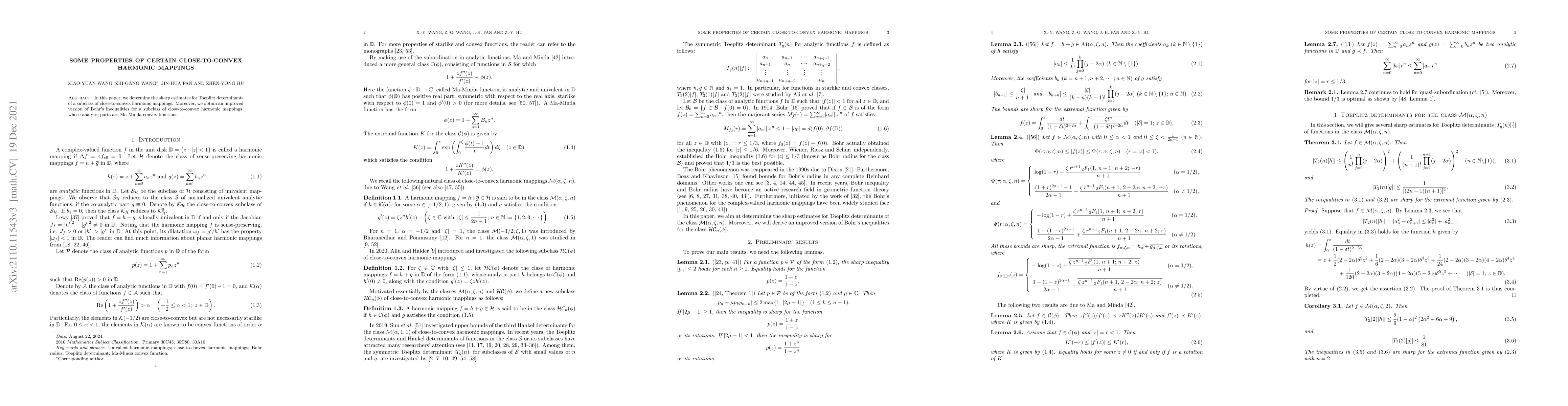 This paper presents sharp estimates for Toeplitz determinants in a subclass of close-to-convex harmonic mappings and improves Bohr's inequalities for these mappings, particularly focusing on those with Ma-Minda convex analytic parts.