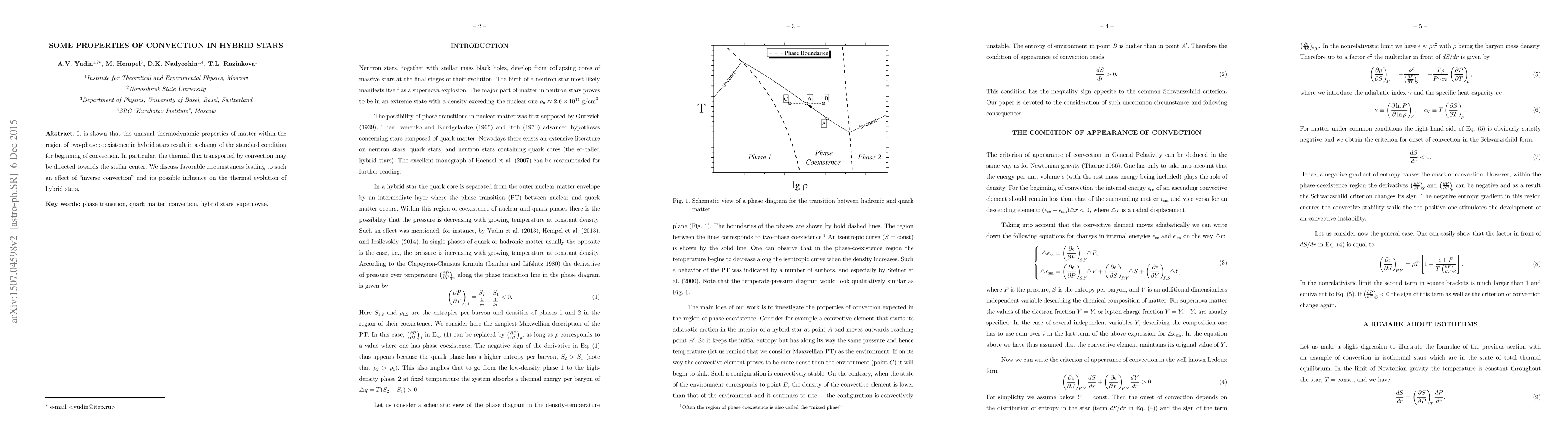 Hybrid stars can experience a phenomenon called 'inverse convection' where thermal flux is directed towards the stellar center due to unusual thermodynamic properties in two-phase coexistence regions. This could influence their thermal evolution.