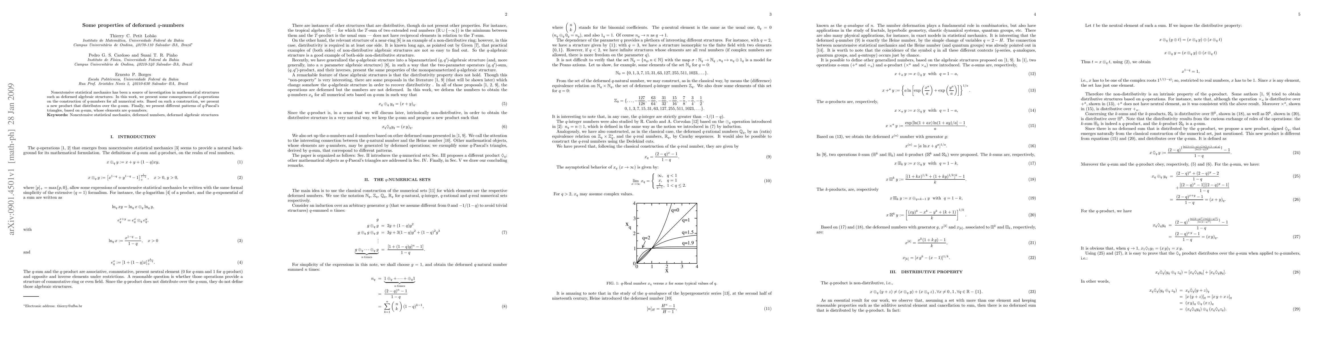 Nonextensive statistical mechanics has been a source of investigation in mathematical structures such as deformed algebraic structures. In this work, we present some consequences of $q$-operations on the construction of $q$-numbers for all numerical sets. Based on such a construction, we present a new product that distributes over the $q$-sum. Finally, we present different patterns of $q$-Pascal's triangles, based on $q$-sum, whose elements are $q$-numbers.
