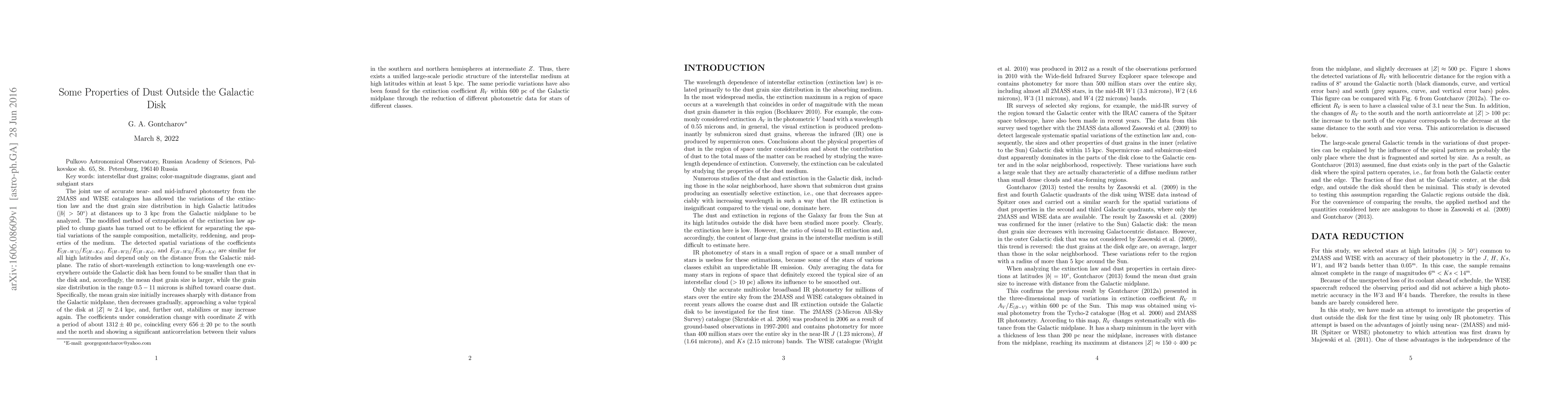 This study analyzes the spatial variations of the extinction law and dust grain size distribution in regions outside the Galactic disk using near- and mid-infrared photometry from 2MASS and WISE. The findings indicate that the mean dust grain size is larger outside the disk, with a periodic structure in the interstellar medium at high latitudes.