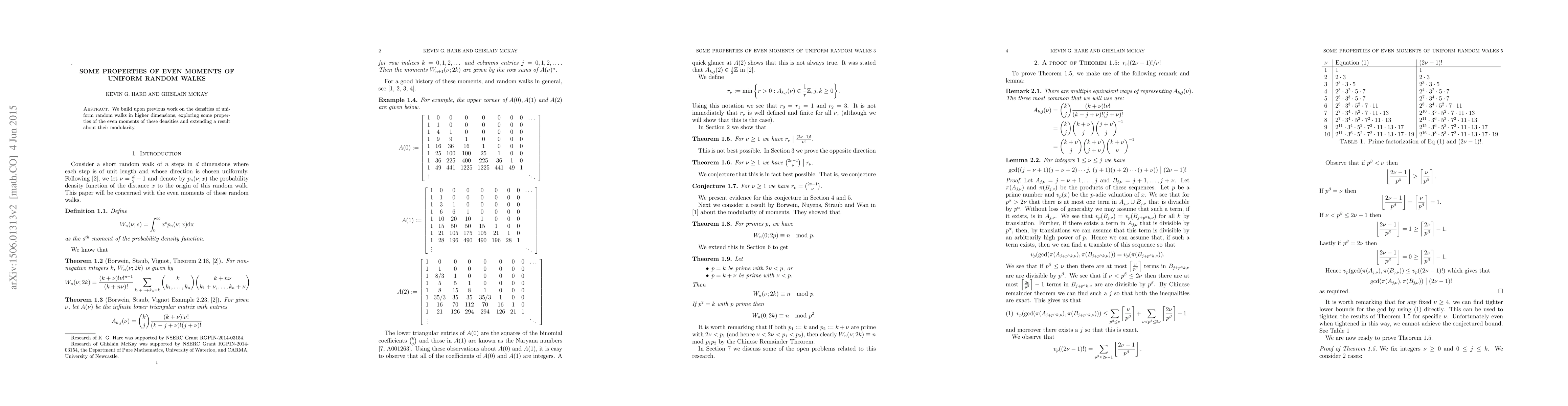 Summary: This paper investigates the properties of even moments in the densities of uniform random walks in higher dimensions, extending a previous result regarding their modularity. The focus is on the mathematical characteristics and implications of these even moments.