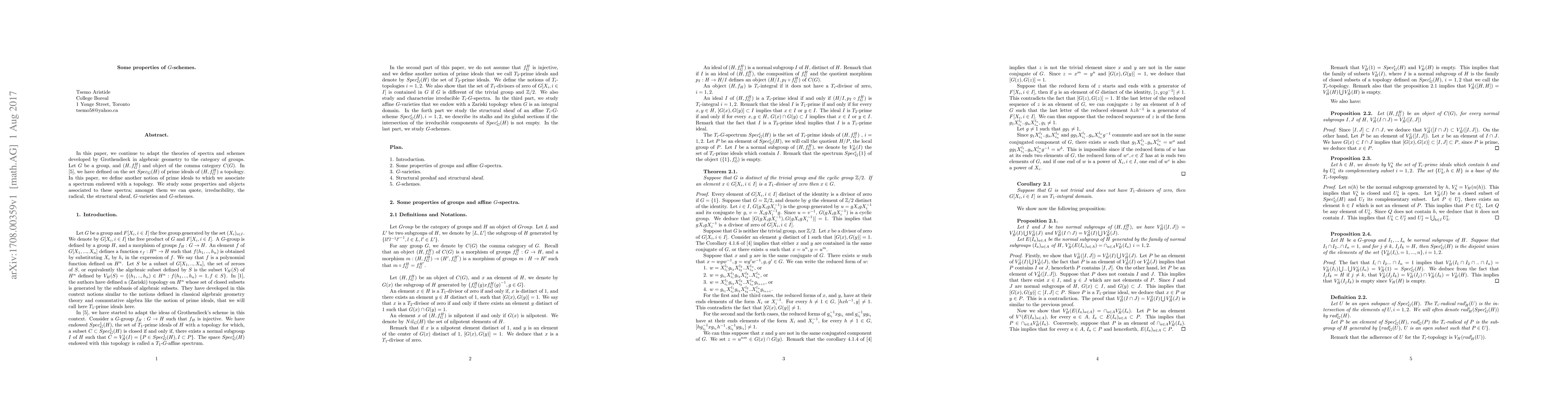 This paper extends Grothendieck's theories of spectra and schemes to the category of groups, defining new prime ideals and associated spectra. It explores properties like irreducibility, the radical, structural sheaves, and introduces $G$-varieties and $G$-schemes.