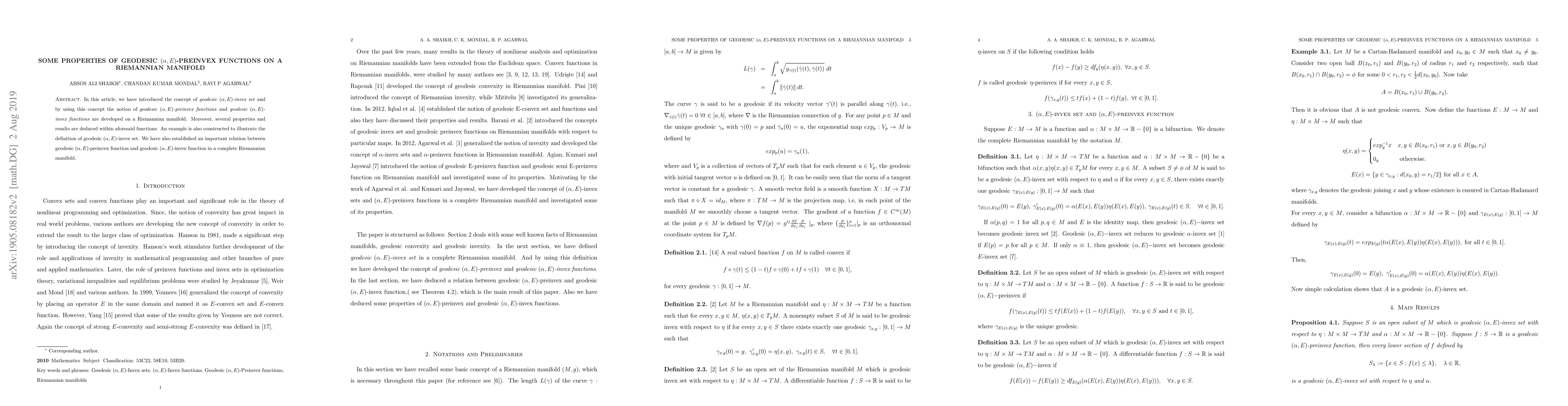 This paper introduces the concept of geodesic $(\alpha,E)$-invex sets and develops the notions of geodesic $(\alpha,E)$-preinvex and $(\alpha,E)$-invex functions on a Riemannian manifold. It deduces several properties and establishes a relation between geodesic $(\alpha,E)$-preinvex and $(\alpha,E)$-invex functions in a complete Riemannian manifold, with an illustrative example provided.