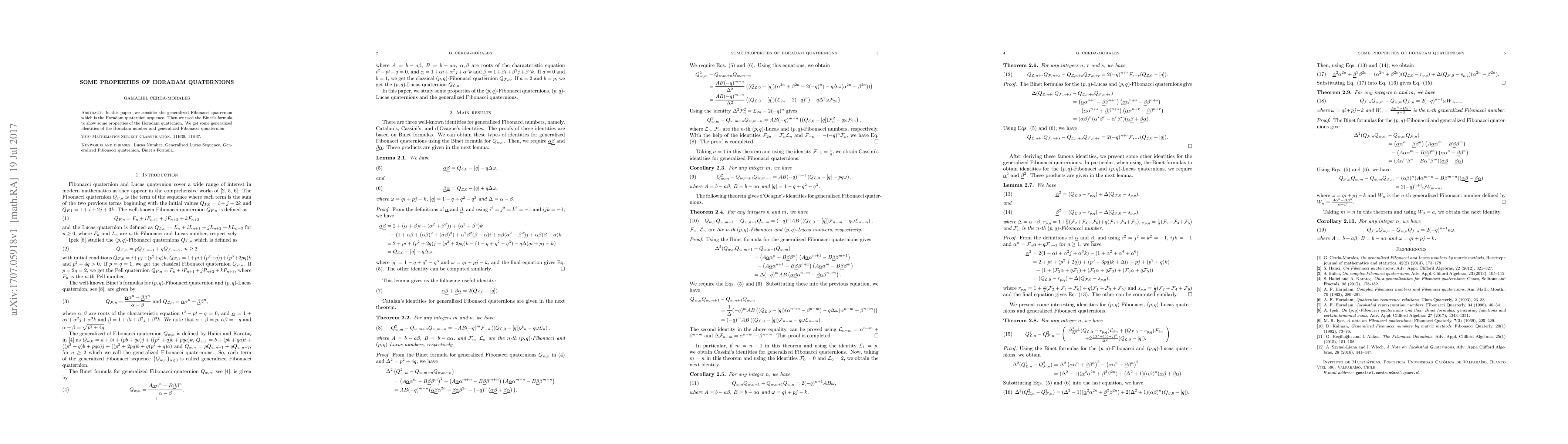 This paper explores the Horadam quaternion sequence, a generalized Fibonacci quaternion, and utilizes Binet's formula to derive properties and generalized identities of the Horadam number and the generalized Fibonacci quaternion.