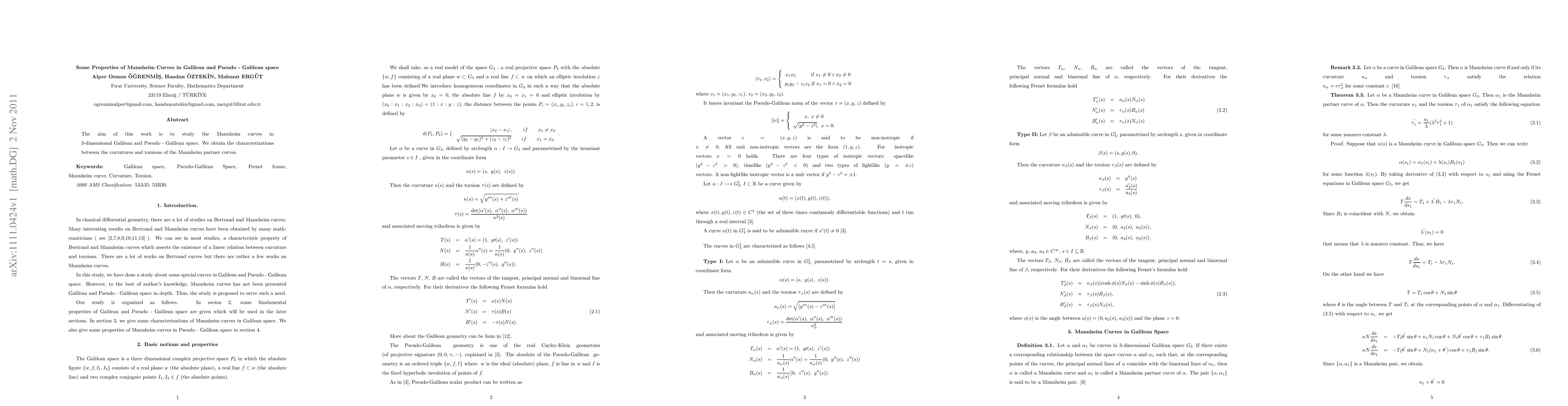 Summary: This paper investigates Mannheim curves in 3-dimensional Galilean and Pseudo-Galilean spaces, focusing on the relationships between the curvatures and torsions of these curves. The study provides characterizations of the geometric properties of Mannheim partner curves in these spaces.