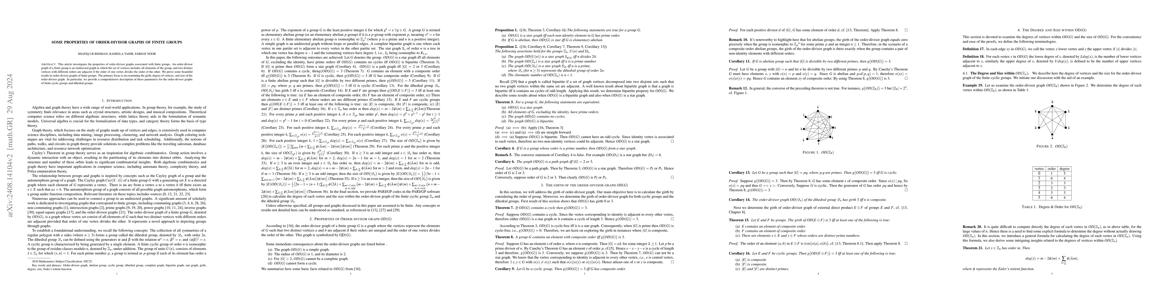 This paper explores the properties of order-divisor graphs of finite groups, focusing on girth, vertex degrees, and graph size. It provides detailed analyses for cyclic and dihedral groups, revealing significant structural results.