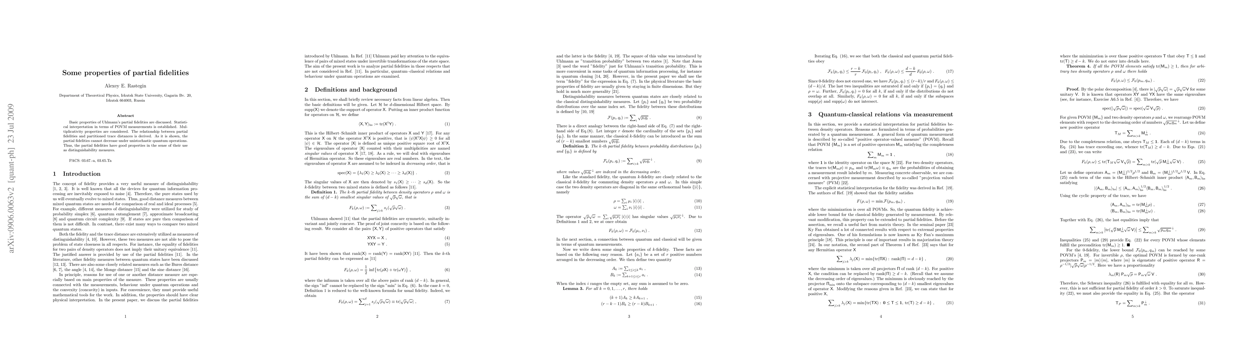 Uhlmann's partial fidelity is introduced as a measure of distinguishability between quantum states.
