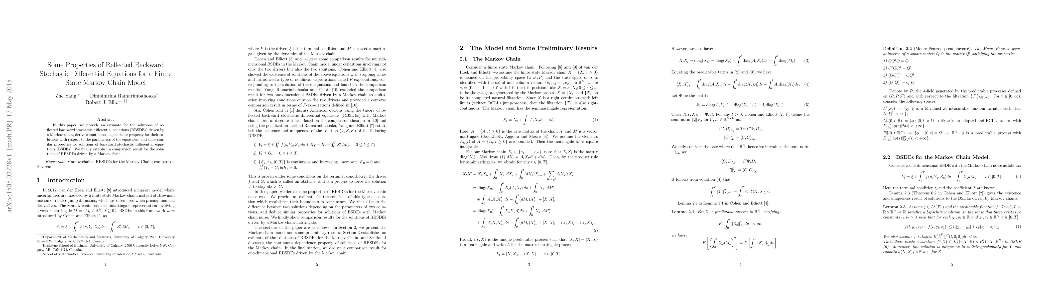 This paper estimates solutions of reflected backward stochastic differential equations (RBSDEs) driven by a Markov chain, derives continuous dependence properties, and establishes a comparison result for these solutions. It also extends similar properties to solutions of backward stochastic differential equations (BSDEs).