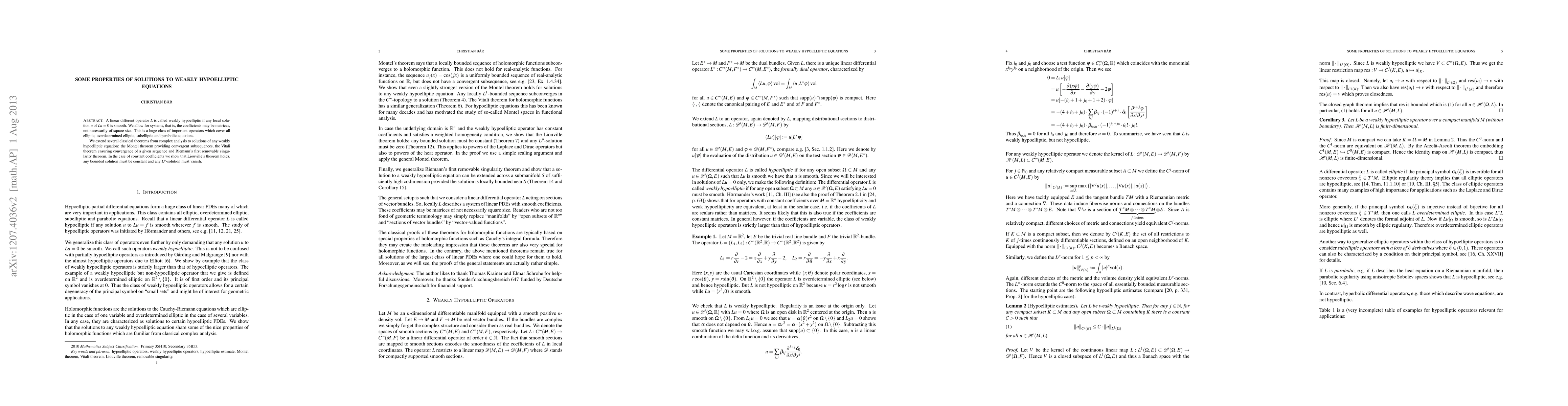 A linear different operator L is called weakly hypoelliptic if any local solution u of Lu=0 is smooth. We allow for systems, that is, the coefficients may be matrices, not necessarily of square size. This is a huge class of important operators which cover all elliptic, overdetermined elliptic, subelliptic and parabolic equations. We extend several classical theorems from complex analysis to solutions of any weakly hypoelliptic equation: the Montel theorem providing convergent subsequences, the Vitali theorem ensuring convergence of a given sequence and Riemann's first removable singularity theorem. In the case of constant coefficients we show that Liouville's theorem holds, any bounded solution must be constant and any L^p-solution must vanish.