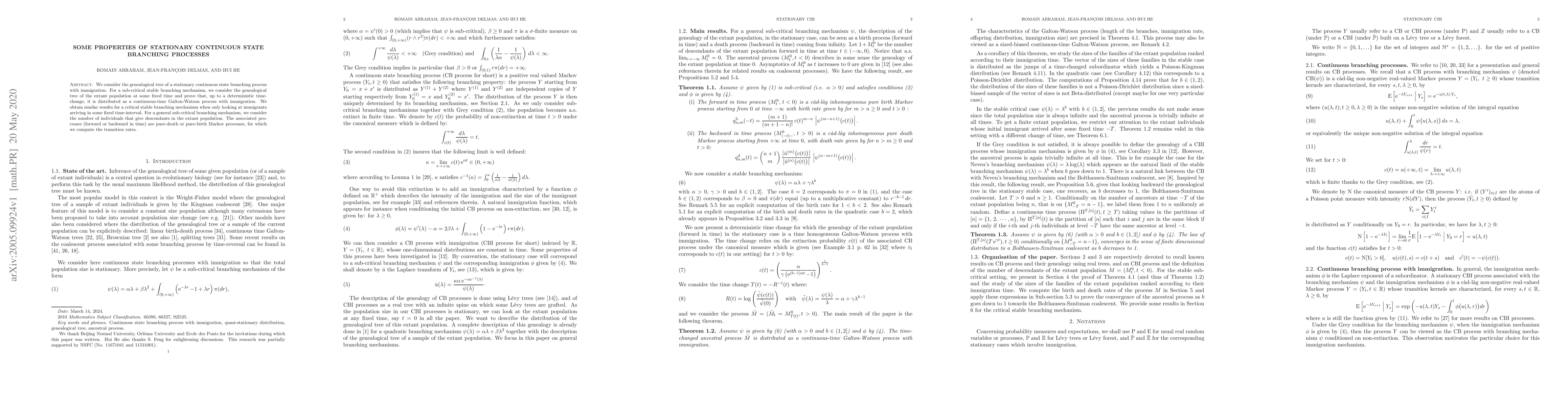This paper investigates the genealogical tree of a stationary continuous state branching process with immigration, showing that it behaves like a continuous-time Galton-Watson process with immigration under sub-critical and critical stable branching mechanisms. The study also computes transition rates for the associated pure-death or pure-birth Markov processes in general sub-critical branching scenarios.