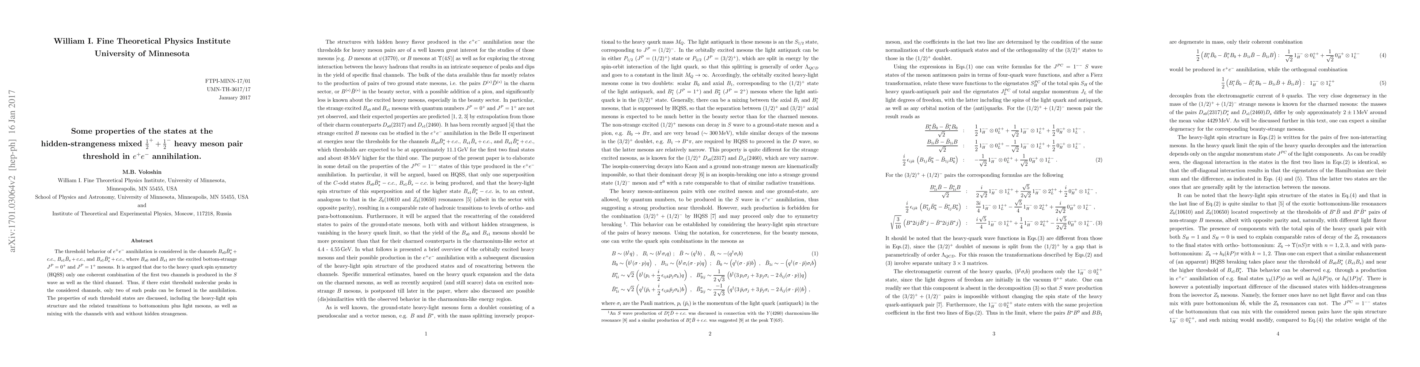 This paper investigates the threshold behavior of $e^+ e^-$ annihilation in specific channels involving excited bottom-strange mesons, arguing that due to heavy quark spin symmetry, only two threshold molecular peaks can form. It discusses the properties of these states, including their heavy-light spin structure and interactions with other meson channels.