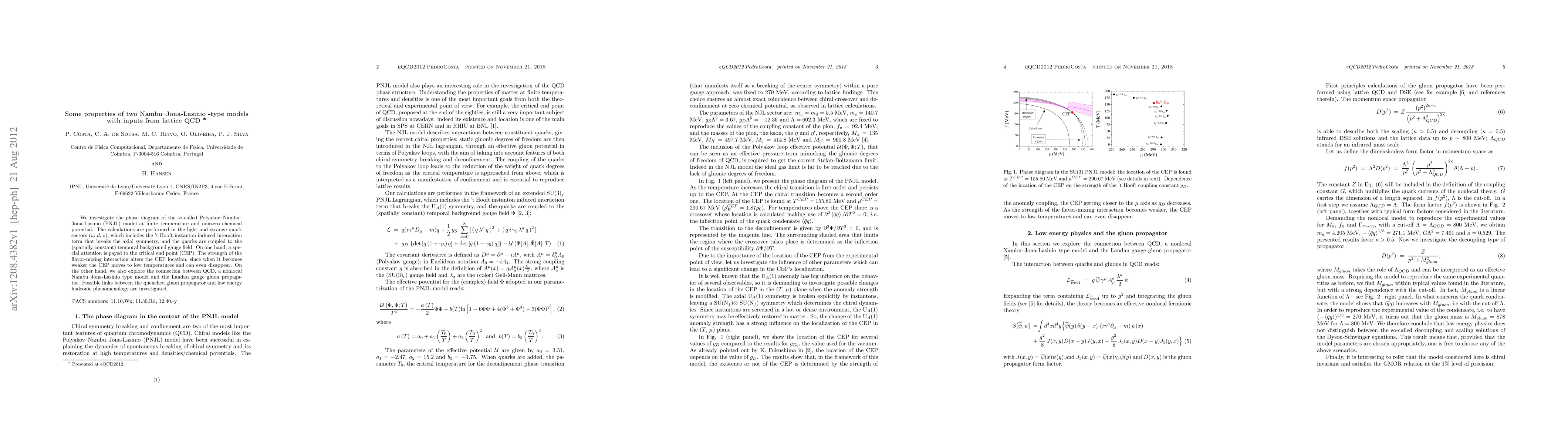 We investigate the phase diagram of the so-called Polyakov--Nambu--Jona-Lasinio (PNJL) model at finite temperature and nonzero chemical potential. The calculations are performed in the light and strange quark sectors ($u$, $d$, $s$), which includes the 't Hooft instanton induced interaction term that breaks the axial symmetry, and the quarks are coupled to the (spatially constant) temporal background gauge field. On one hand, a special attention is payed to the critical end point (CEP). The strength of the flavor-mixing interaction alters the CEP location, since when it becomes weaker the CEP moves to low temperatures and can even disappear. On the other hand, we also explore the connection between QCD, a nonlocal Nambu--Jona-Lasinio type model and the Landau gauge gluon propagator. Possible links between the quenched gluon propagator and low energy hadronic phenomenology are investigated.
