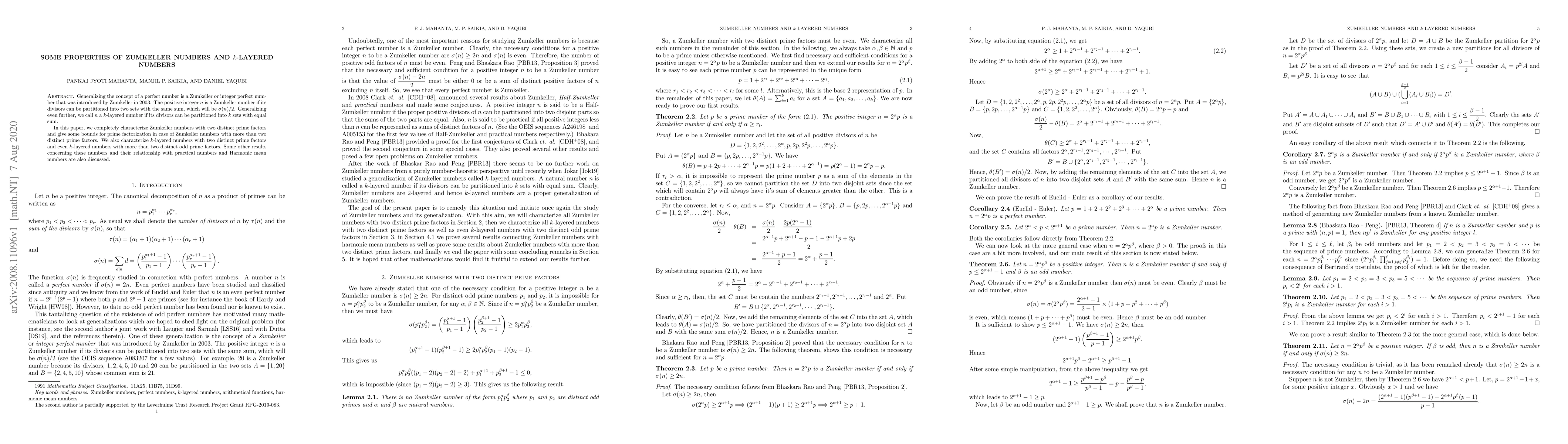 Researchers characterize Zumkeller numbers (numbers with divisors in equal sums) and k-layered numbers (numbers with k sets of divisors in equal sums), focusing on properties with two distinct prime factors and implications for practical numbers.