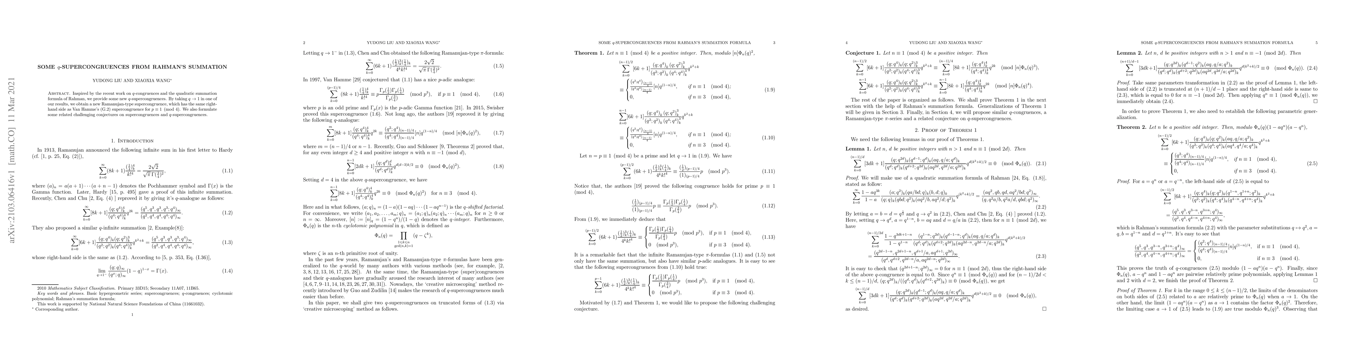 This paper introduces new $q$-supercongruences inspired by Rahman's summation formula, including a Ramanujan-type supercongruence obtained by taking $q\to 1$. It also proposes several conjectures related to supercongruences and $q$-supercongruences.