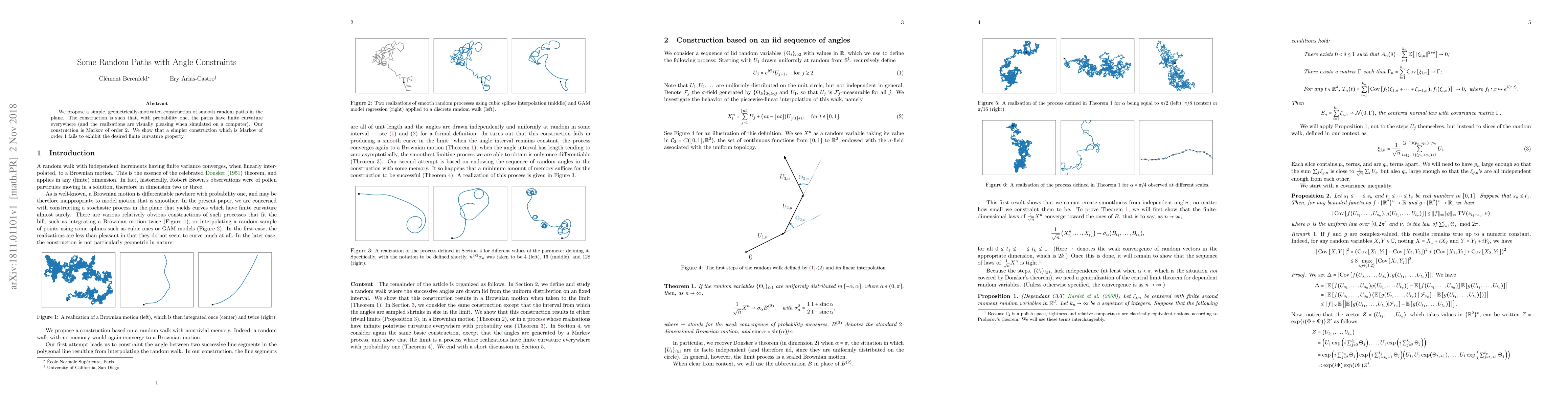 Researchers propose a construction method for smooth random paths in the plane with finite curvature, achieving this through a Markov process of order 2.