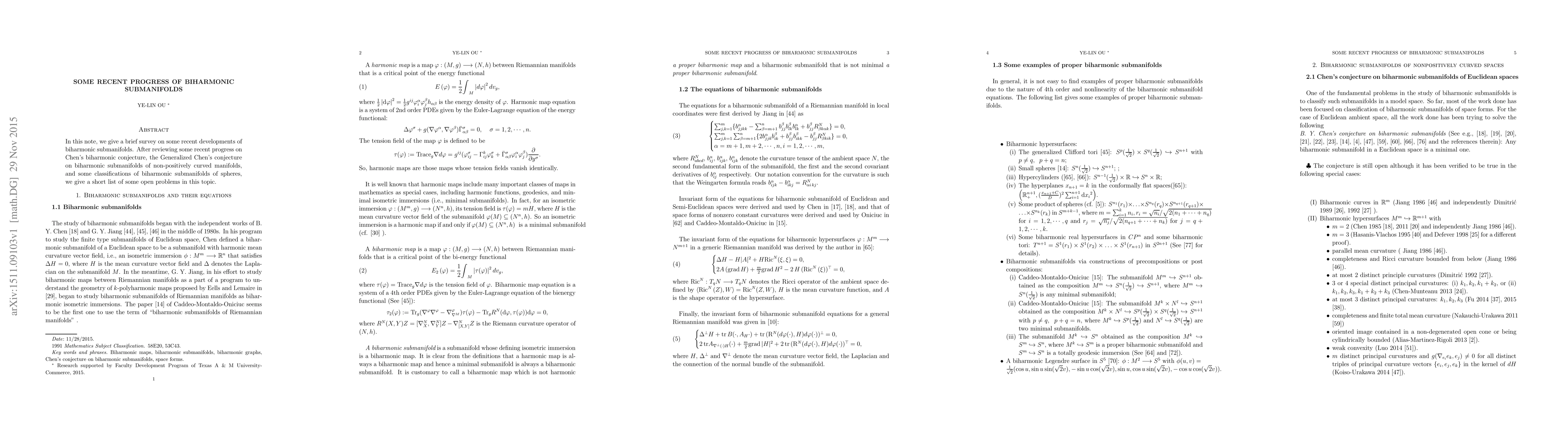 This paper provides an overview of recent advancements in biharmonic submanifolds, focusing on progress in Chen's biharmonic conjecture, generalized conjectures for non-positively curved manifolds, and classifications of biharmonic submanifolds in spheres, concluding with a list of open research questions.