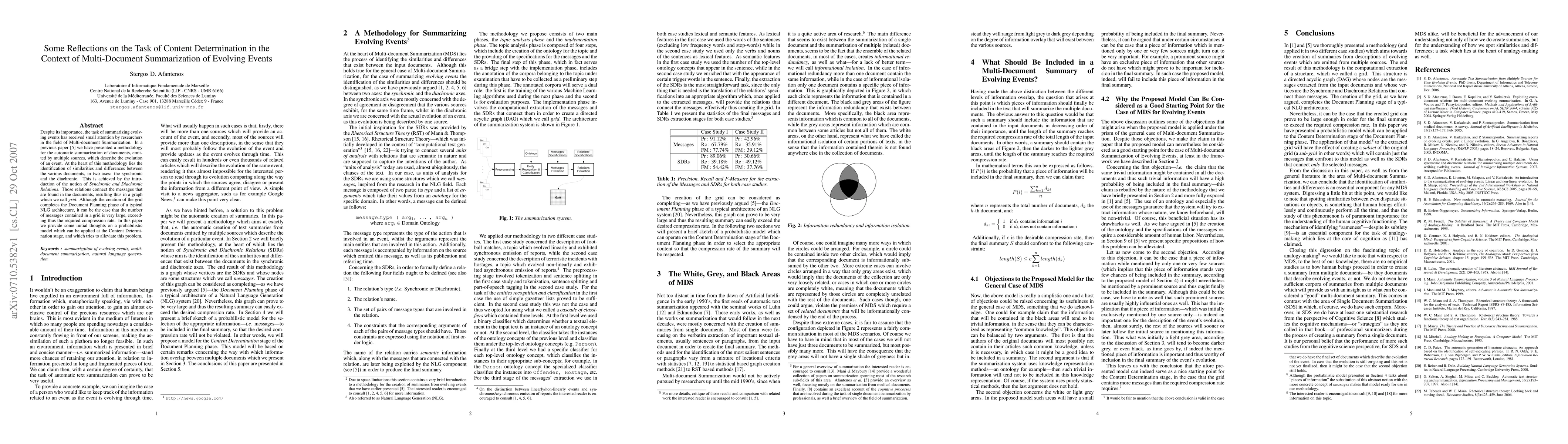 This paper explores a new approach to summarizing evolving events in multi-document summarization, addressing the challenge of large grid sizes that can exceed compression limits. A probabilistic model is proposed to alleviate this issue at the Content Determination stage.