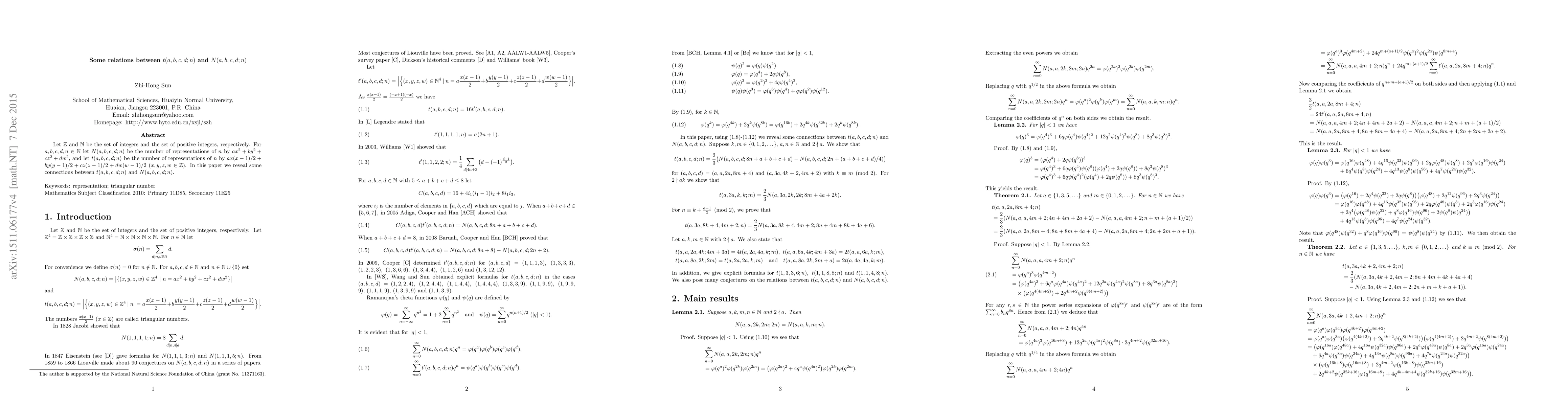 This paper explores the relationships between the number of integer representations $t(a,b,c,d;n)$ and the number of positive integer representations $N(a,b,c,d;n)$ for the expressions $ax^2+by^2+cz^2+dw^2$. It reveals connections between these two quantities.