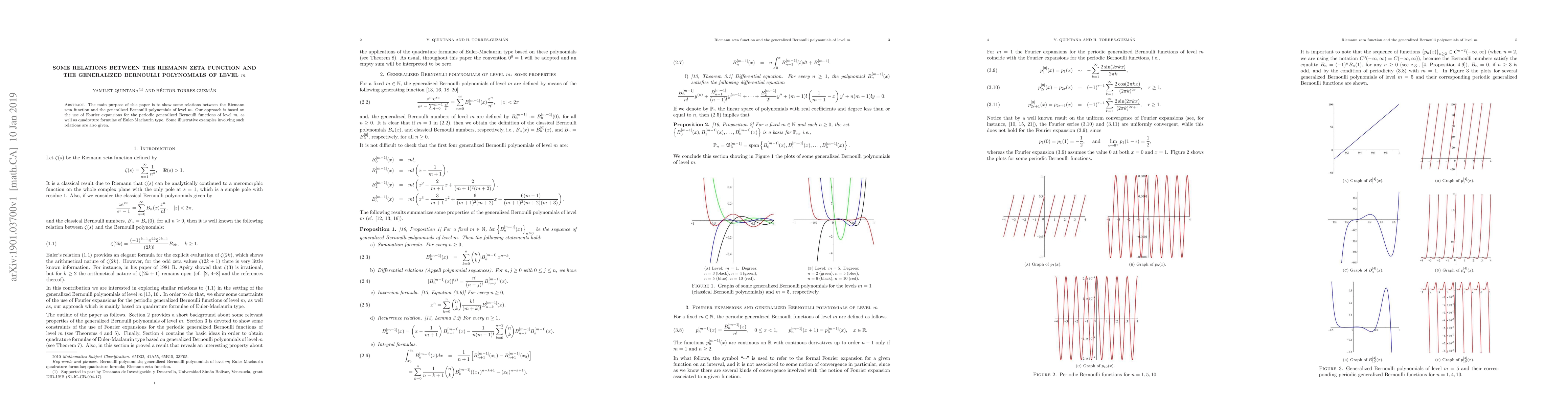 This paper establishes connections between the Riemann zeta function and generalized Bernoulli polynomials of level $m$ through Fourier expansions and Euler-Maclaurin quadrature. Illustrative examples highlight these relationships.