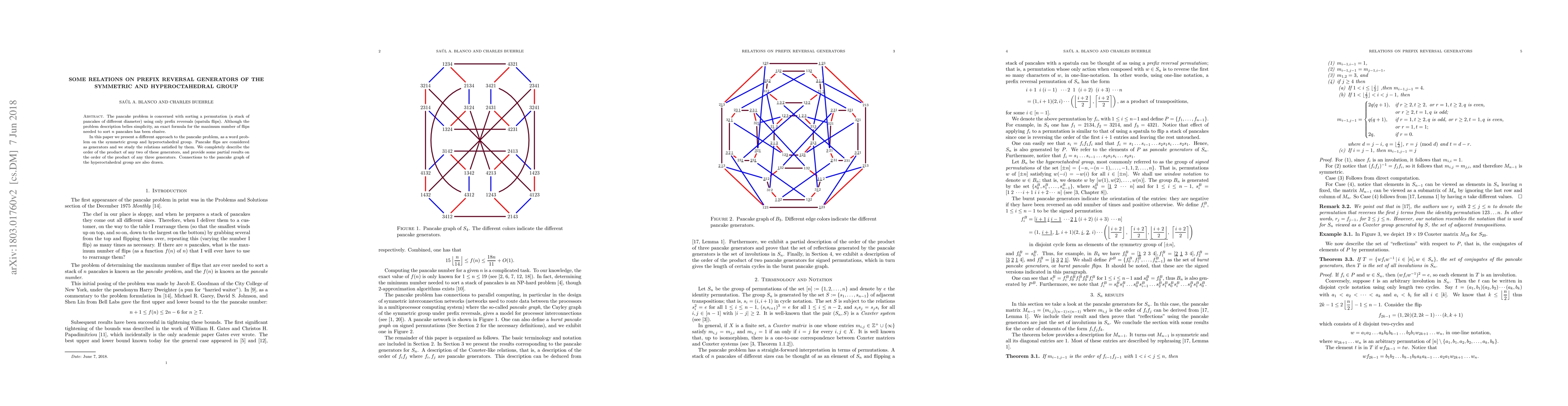 This paper explores the pancake problem using prefix reversals as generators for the symmetric and hyperoctahedral groups, detailing the relations between these generators and providing a complete order description for pairs of generators, along with partial results for triples. It also links these findings to the pancake graph of the hyperoctahedral group.