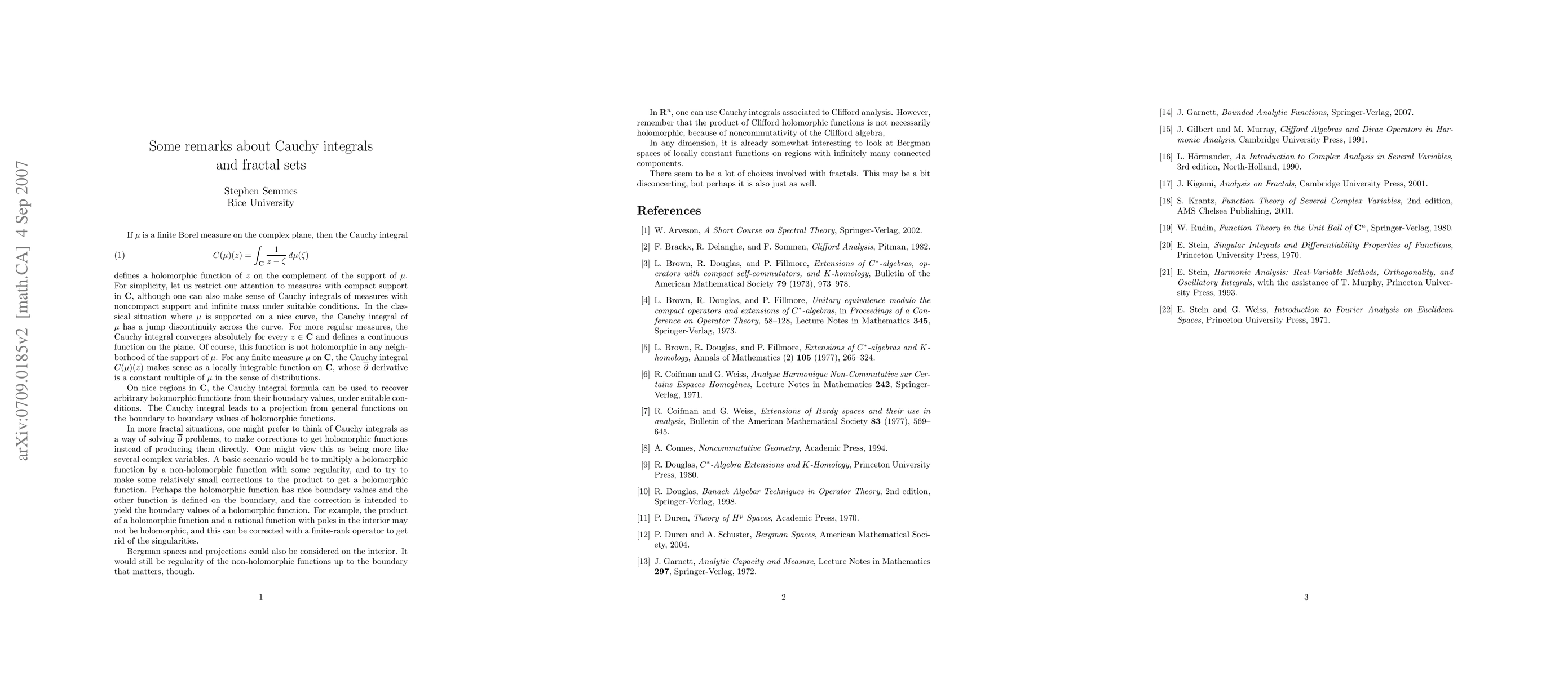 Summary: This paper explores the behavior of Cauchy integrals over fractal sets with dimensions exceeding 1, providing insights into their unique mathematical properties.
