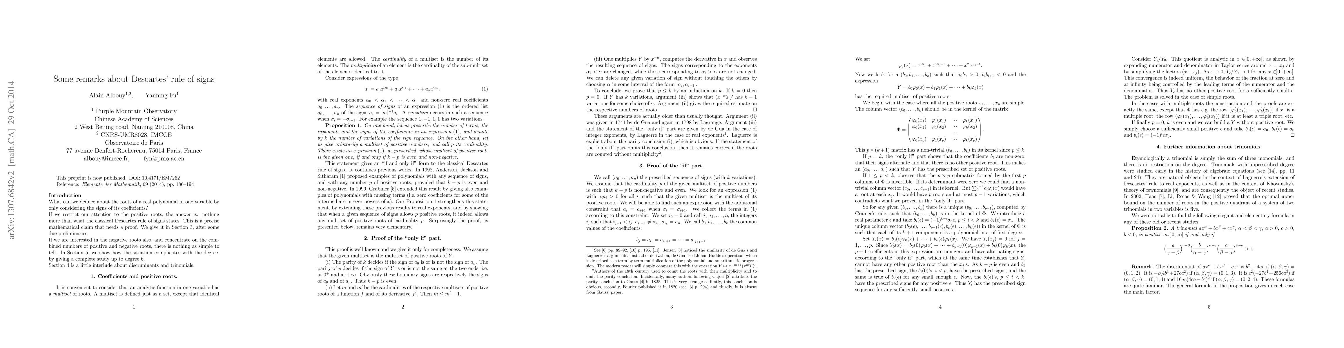 Summary: This paper refines Descartes' rule of signs to provide a clearer understanding of the positive roots of real polynomials, and introduces new constraints on the combined counts of both positive and negative roots based on coefficient signs.