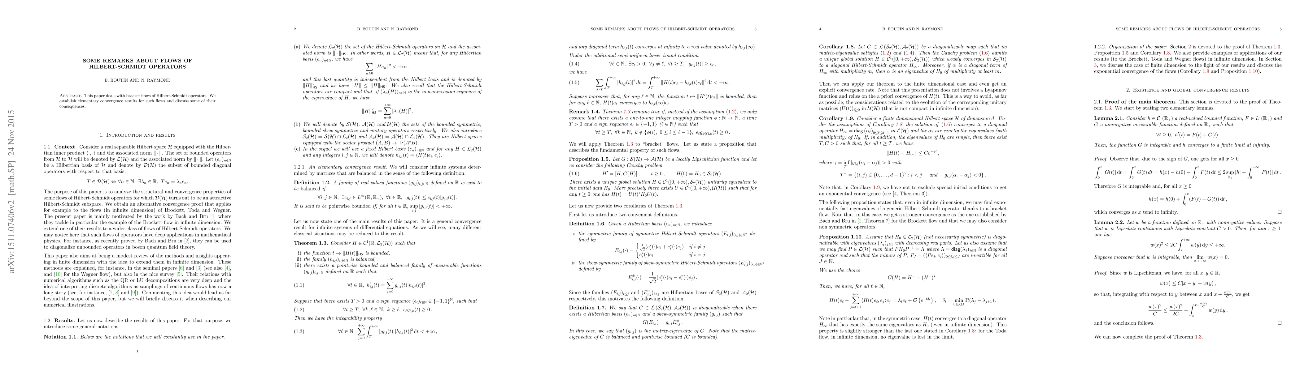 This paper deals with bracket flows of Hilbert-Schmidt operators. We establish elementary convergence results for such flows and discuss some of their consequences.