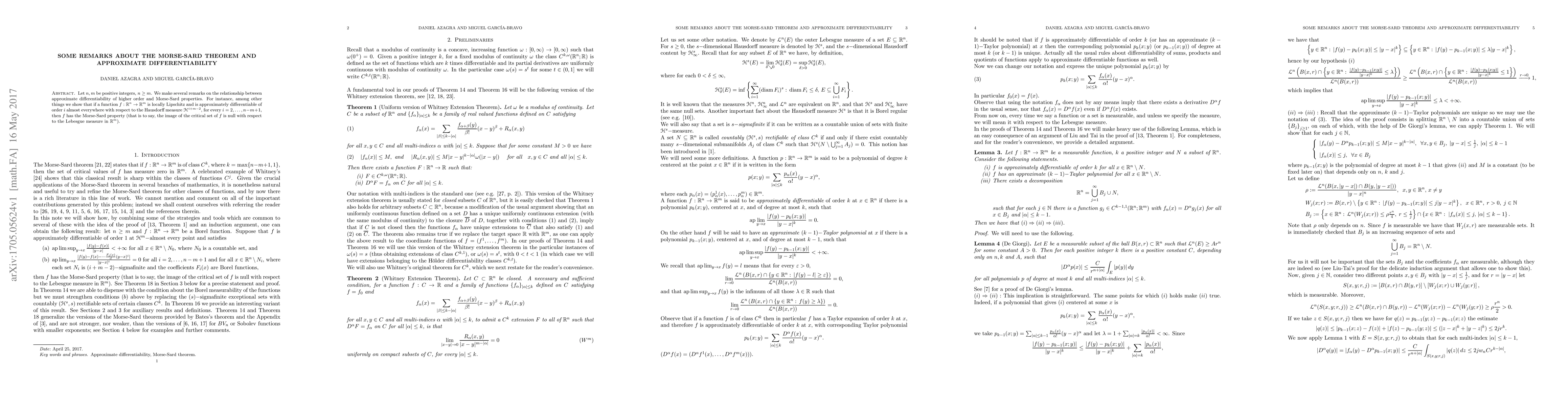 The paper introduces new theorems that connect approximate differentiability of higher order with Morse-Sard properties, providing a deeper understanding of the geometric structure of function spaces.