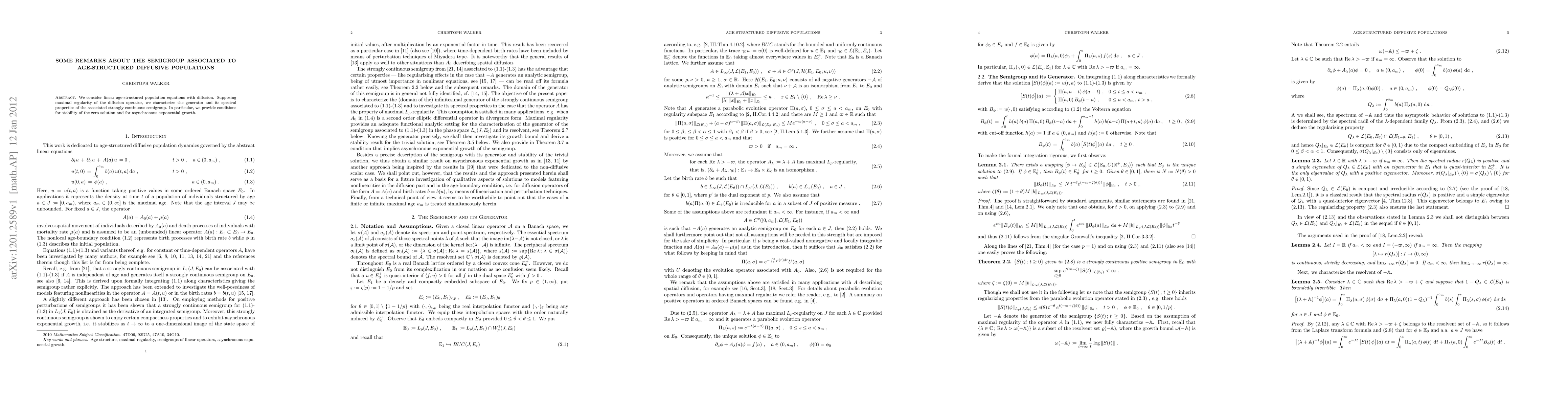This paper investigates linear age-structured population equations with diffusion, focusing on the generator and spectral properties of the associated semigroup under maximal regularity. It provides conditions for stability and asynchronous exponential growth of the zero solution.