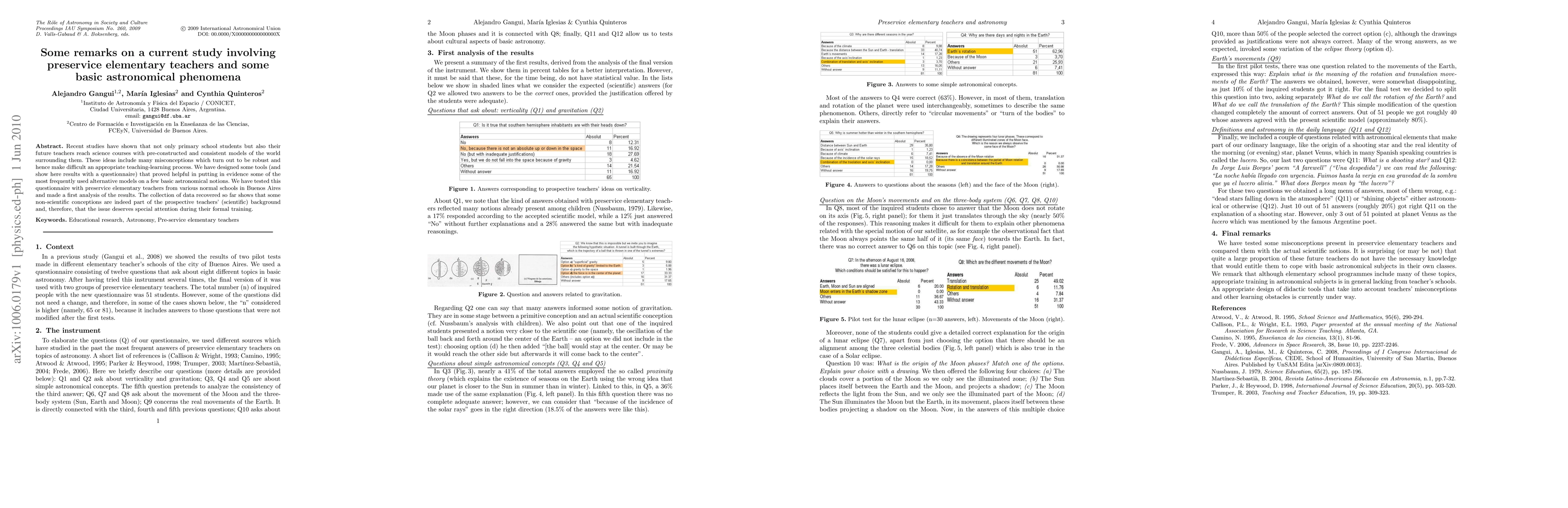 This study investigates preservice elementary teachers' misconceptions about basic astronomical phenomena, revealing that they hold pre-constructed, scientifically inaccurate models. Tools designed to expose these misconceptions showed that prospective teachers need special attention in their training to address these issues.