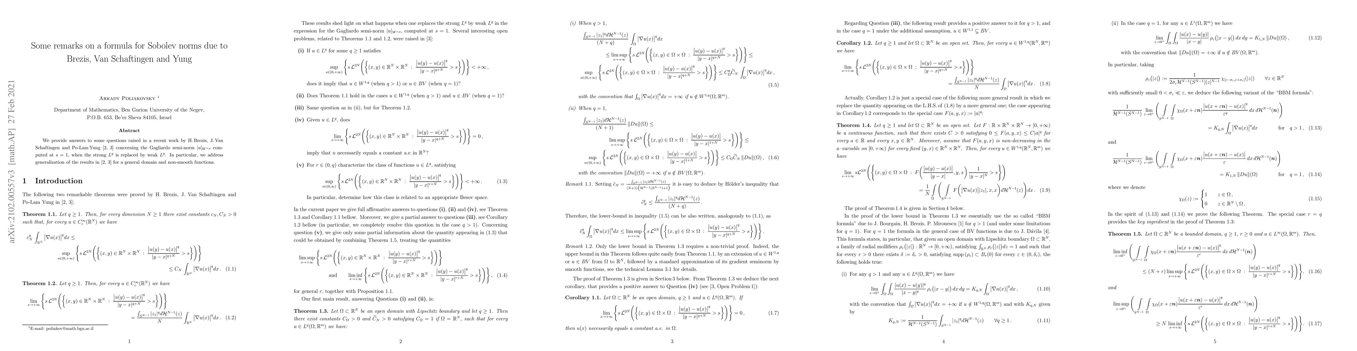 This paper provides answers to questions about a formula for Sobolev norms in weak L^q spaces, addressing generalization of results for non-smooth functions and domains.