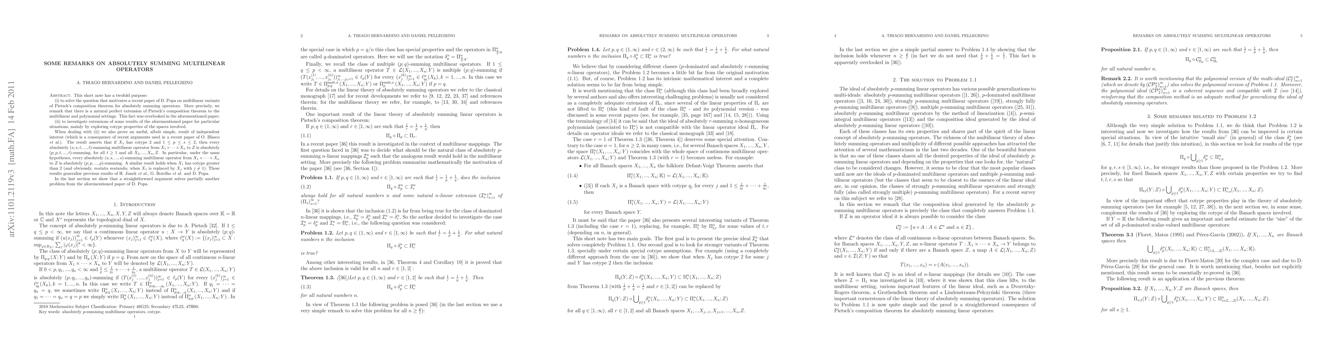 This short note has a twofold purpose: (i) to solve the question that motivates a recent paper of D. Popa on multilinear variants of Pietsch's composition theorem for absolutely summing operators. More precisely, we remark that there is a natural perfect extension of Pietsch's composition theorem to the multilinear and polynomial settings. This fact was overlooked in the aforementioned paper; (ii) to investigate extensions of some results of the aforementioned paper for particular situations, mainly by exploring cotype properties of the spaces involved.
