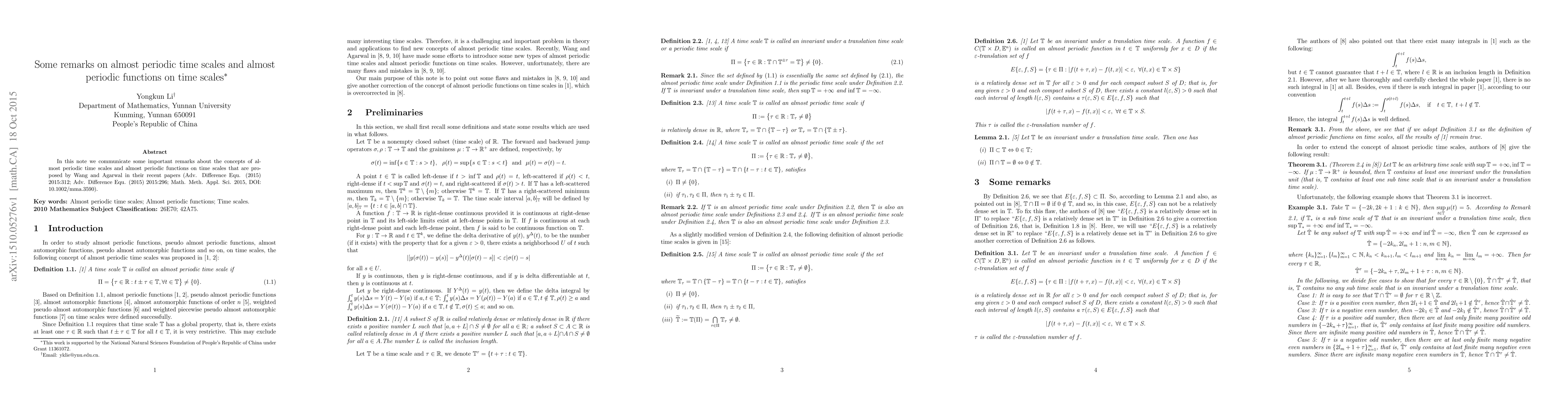 Summary: This paper discusses significant insights into the concepts of almost periodic time scales and almost periodic functions on time scales, building on recent work by Wang and Agarwal. It aims to clarify and expand upon these mathematical constructs.