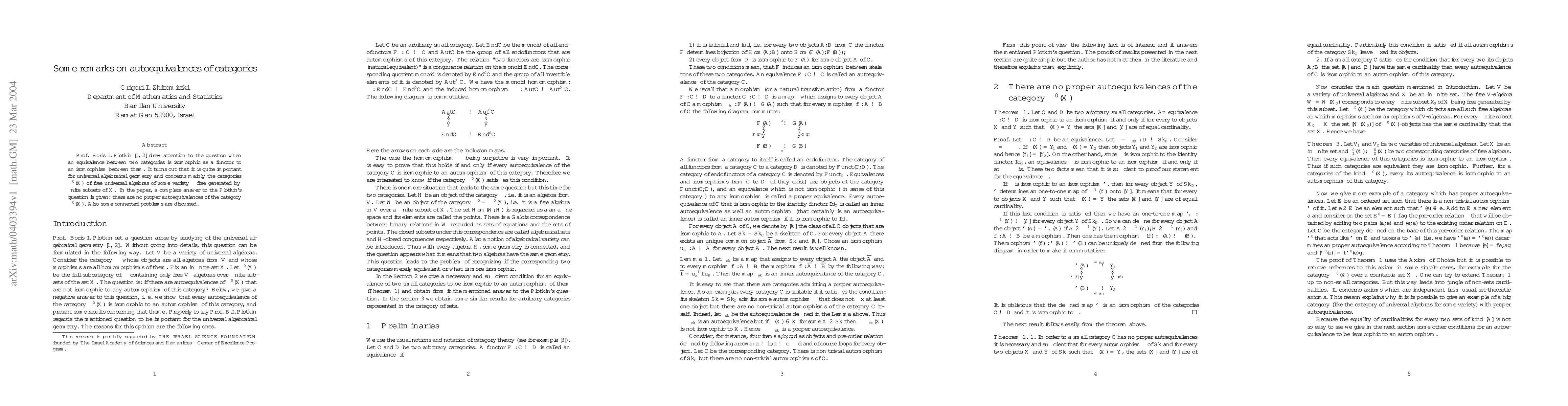 Prof. Boris I. Plotkin [arXiv:math.GM/0210194, arXiv:math.GM/0204245] drew attention to the question when an equivalence between two categories is isomorphic as a functor to an isomorphism between them. It turns out that it is quite important for universal algebraical geometry and concerns mainly the categories $\Theta \sp 0 (X) $ of free universal algebras of some variety $\Theta $ free generated by finite subsets of $X$. In the paper, a complete answer to the Plotkin's question is given: there are no proper autoequivalences of the category $\Theta \sp 0 (X) $. Also some connected problems are discussed.
