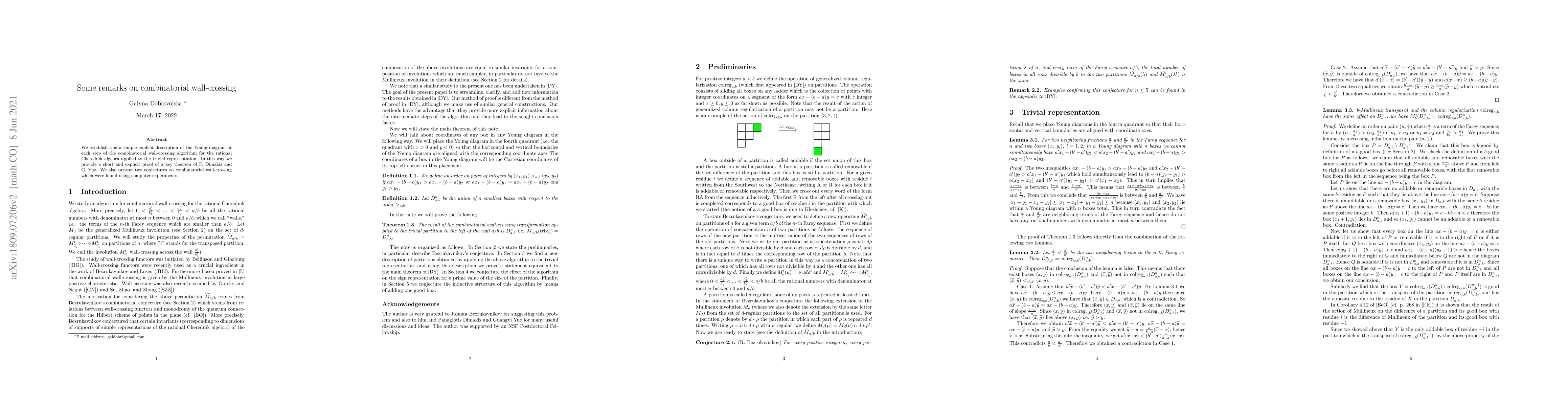 We establish a new simple explicit description of combinatorial wall-crossing for the rational Cherednik algebra applied to the trivial representation. In this way we recover a theorem of P. Dimakis and G. Yue. We also present two conjectures on combinatorial wall-crossing which were found using computer experiments.