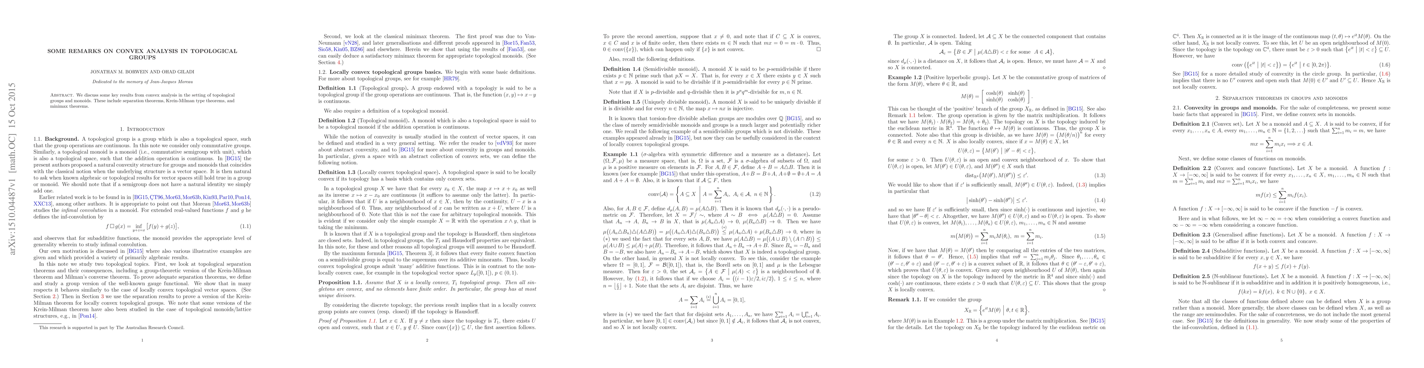 Summary: This paper explores fundamental results in convex analysis within topological groups and monoids, focusing on separation theorems, Krein-Milman type theorems, and minimax theorems. The study highlights the unique challenges and applications of convex analysis in these topological structures.