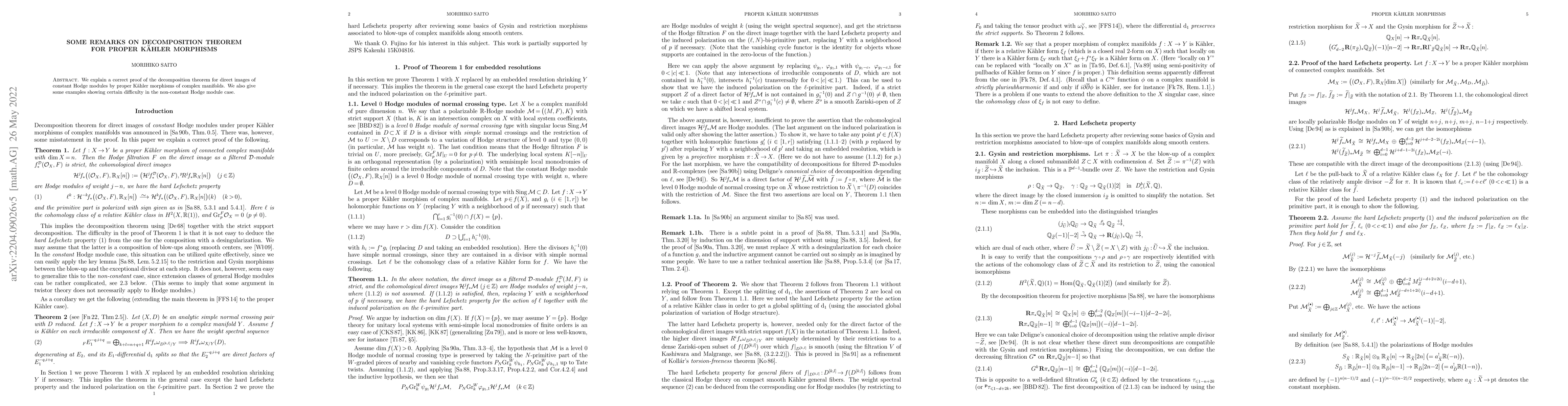 **Summary:** This paper provides a corrected proof for the decomposition theorem regarding the direct images of constant Hodge modules under proper Kähler morphisms of complex manifolds and discusses the complications that arise in cases involving non-constant Hodge modules.