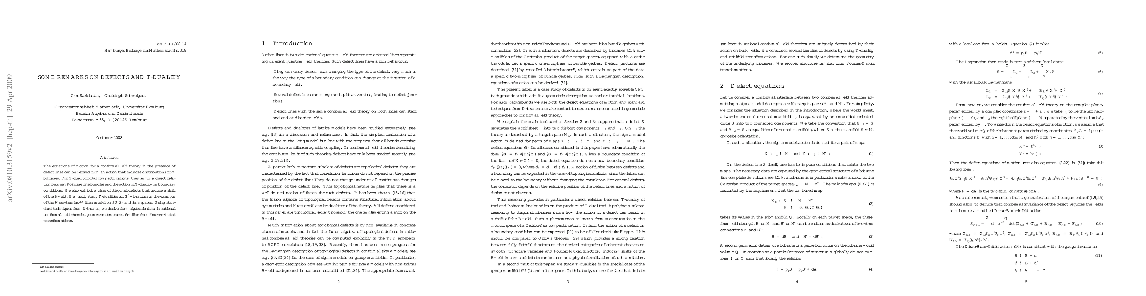This paper explores the equations of motion for conformal field theories with defect lines, deriving them from an action involving bibranes. It establishes a connection between Poincare line bundles and T-duality effects on boundary conditions in toroidal compactifications, and examines T-dualities for S^1-fibrations in the context of the Wess-Zumino-Witten model on SU(2) and lens spaces.
