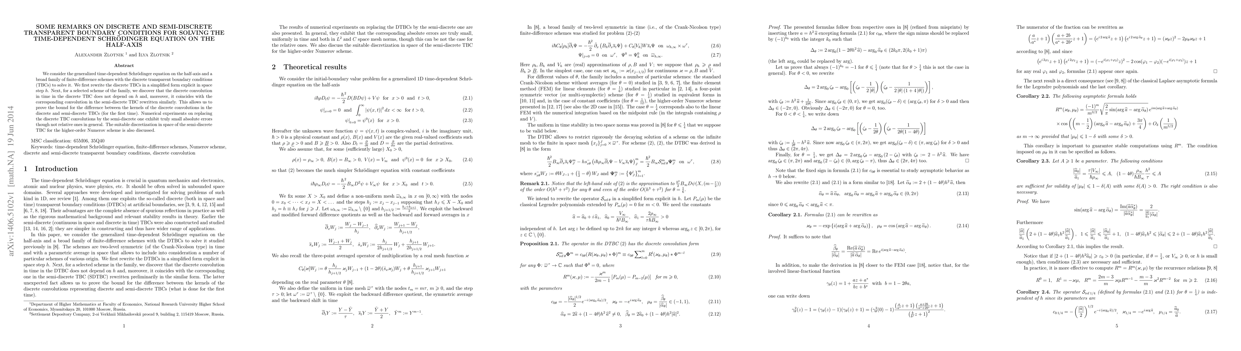 This paper explores discrete and semi-discrete transparent boundary conditions for solving the time-dependent Schrödinger equation on the half-axis, proving a bound for the difference between their convolution kernels and demonstrating small absolute errors in numerical experiments.