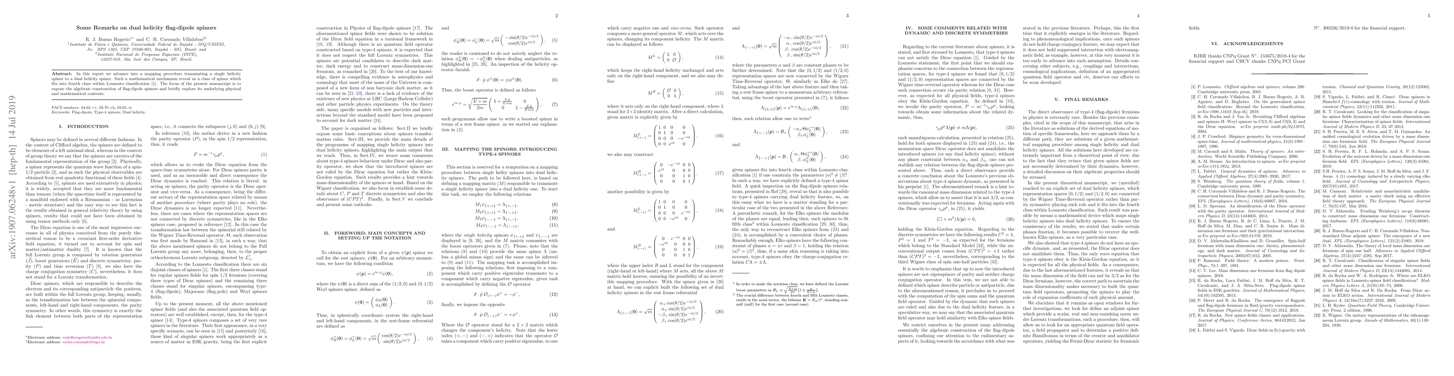 The paper introduces a mathematical device mapping single helicity spinors to dual helicity spinors, explicitly defining type-4 spinors and their properties.